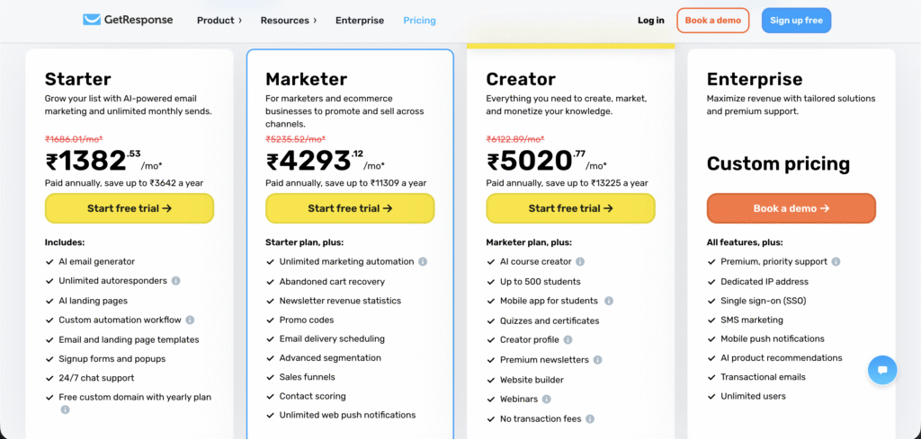 GetResponse is an email marketing platform that has AI technology to help marketers automate and optimize their campaigns. Instead of manually designing emails and sending them at random, GetResponse AI analyzes user behavior, predicts patterns, and helps you make messages that relate with your audience.